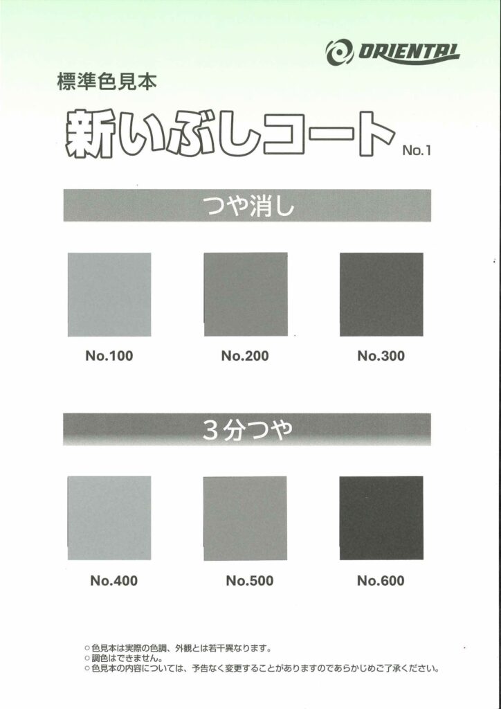 添付の「新いぶしコート色見本」をご参照ください