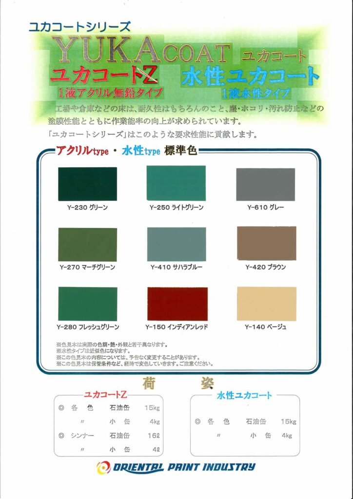 また、水性ユカコートは近似色になりますので、あらかじめご了承ください。