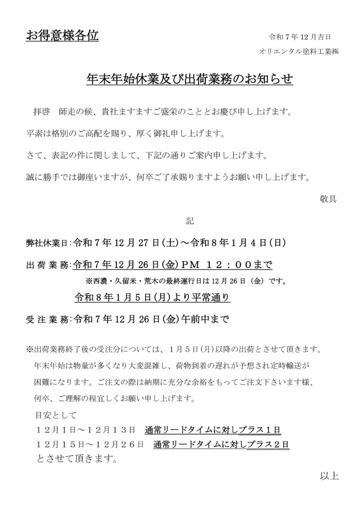 令和7年ゴールデンウィーク休業及び出荷業務のお知らせ